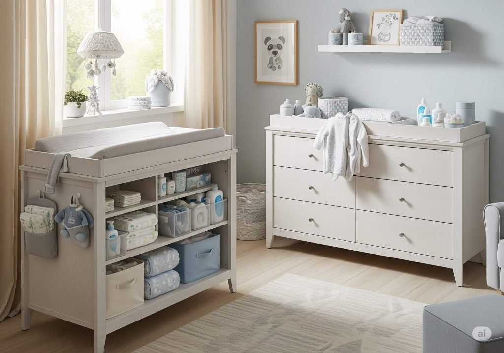 Q3: Can any dresser be used as a changing table? A3: Most sturdy dressers with a flat top can be used as a changing station with the addition of a changing pad or tray. However, it’s crucial to ensure the dresser is stable and, most importantly, anchored to the wall to prevent tipping.