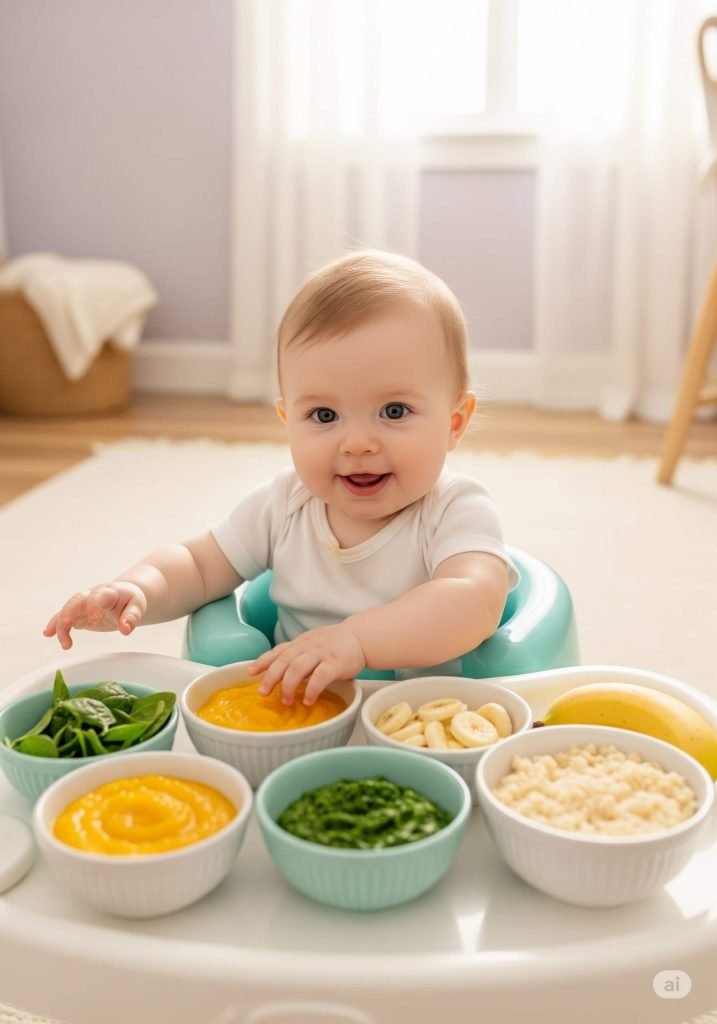 Often a traditional starting point, iron-fortified infant cereals (oatmeal, barley, or multigrain) mixed with breast milk or formula are easy to digest and provide essential iron. Start with a thin consistency and gradually thicken it as your baby gets used to it.